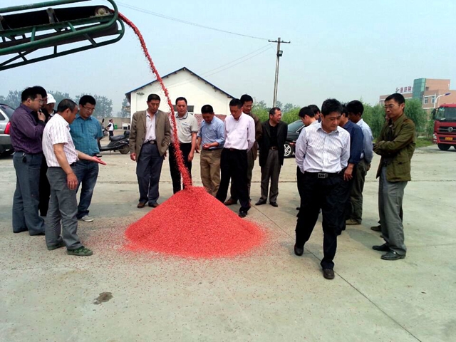 5月20日上午,由供销公司牵头,在普济种子公司率先进行了2300亩种子包衣实验,场领导、种子公司董事长殷文格及生产土地科、农科所和各分场相关领导、承包大户代表20余人到现场观看了包衣过程。在厂家工作人员的指导下,经过精选加工后的种子一批批的进入装有药剂的滚筒中,通过机器的运转将包衣剂均匀的裹在种子表层,再通过传输带运出。整个工艺流程简单易操作,且包衣速度快、成效显著。
