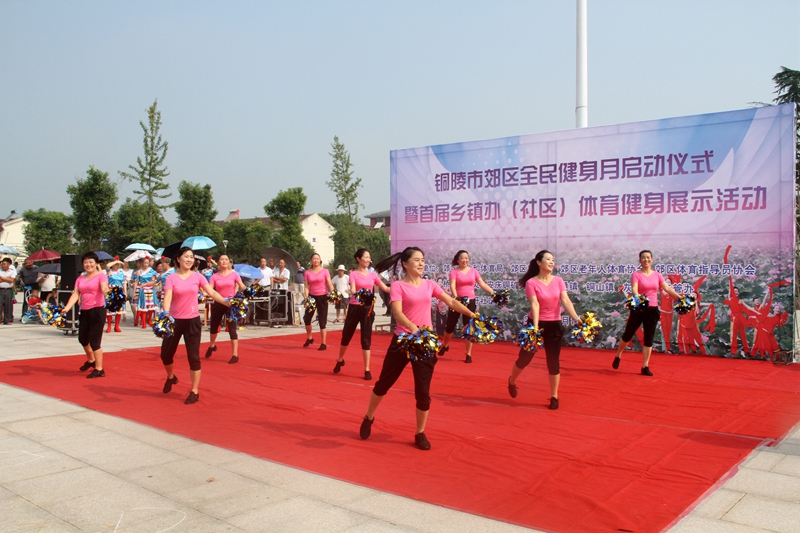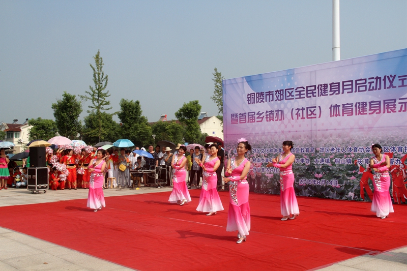 8月14日,普济广场人头攒动,热闹非凡,普济圩社区在此承办全民健身月活动启动仪式暨郊区首届乡镇办(社区)体育健身展示活动。普济圩农场党委书记凌明智、郊区区委副书记章坤、区委常委、宣传部长朱世木,还有区人大、区政府、区政协、区关工委、区教育局、区文体局、郊区老体协、铜官山区老体协和市健身球协会领导及乡镇办分管负责人亲临现场指导观摩。500多名居民前来参加启动仪式并观看表演。