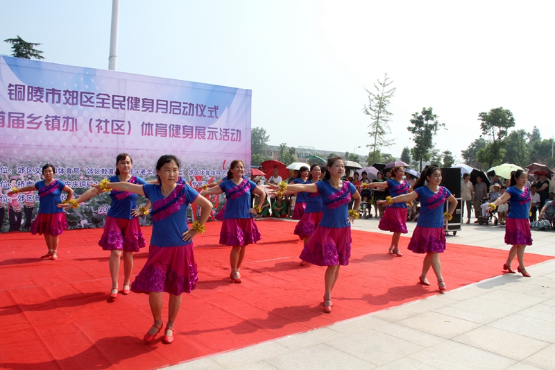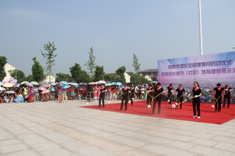 启动仪式后,来自郊区各乡镇办、社区14支健身舞队100多名表演者先后登台亮相,分别表演了广场舞、柔乐球、可乐球,太极剑等15个节目,多样的健身项目展示充分凸显了郊区居民的新风貌和全民健身的新风采,为社区群众展示了充满活力和朝气的舞姿,为现场观众呈现了一场长久回味的视觉盛宴。现场掌声、呐喊声和欢笑声不断,气氛热烈。