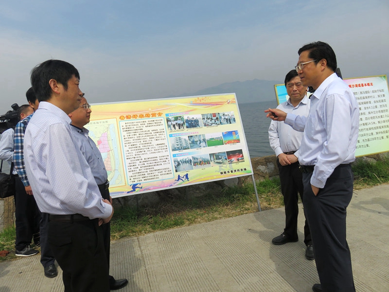 倪玉平一行分别前往梳妆台闸、枫沙湖跑马堤等关键防汛节点部位现场察看,并听取场长殷文格关于梳妆台闸、陈瑶湖、枫沙湖及农场水系结构分布、水利工程调度、防汛工作开展等情况汇报,并对防汛工作做了强调。