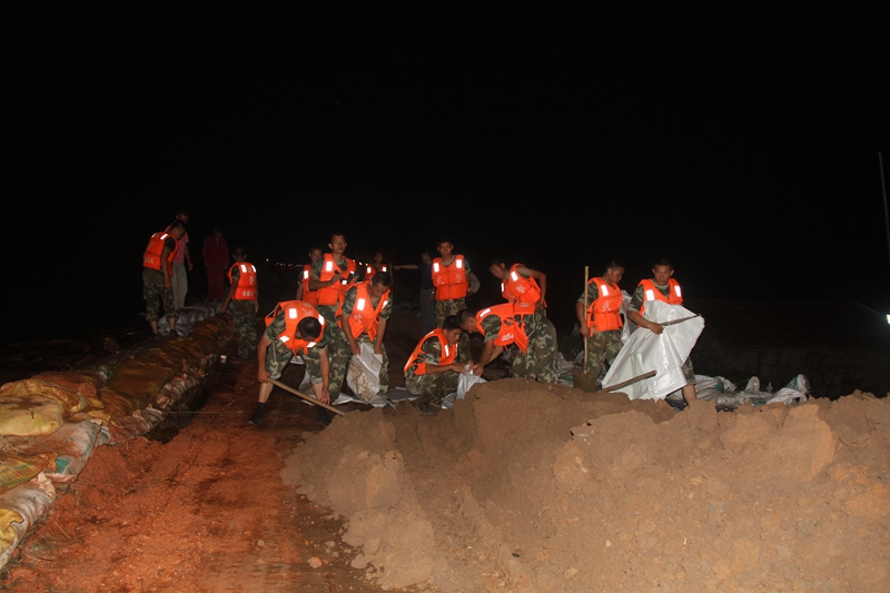 当晚,省武警总队领导在副市长张梦生、场主要领导殷文格陪同下,对现场险情进行查勘,并会商制定了抢险方案。普济圩农场同时调集金迈公司、建筑公司2支抢险突击队,组织挖掘机、运输车,与武警官兵携手作战。支队官兵与农场职工群众并肩作战,他们不顾疲劳,连夜连续作战,手拿铁锹、镐头等工具,历经6个小时,对两处塌方处进行加固处理。
