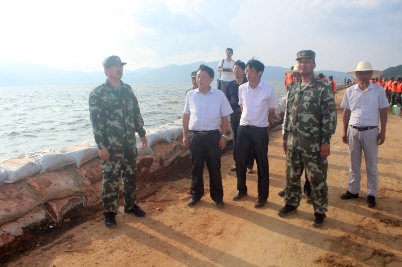 张梦生副市长检查枫沙湖跑马堤加固抢险