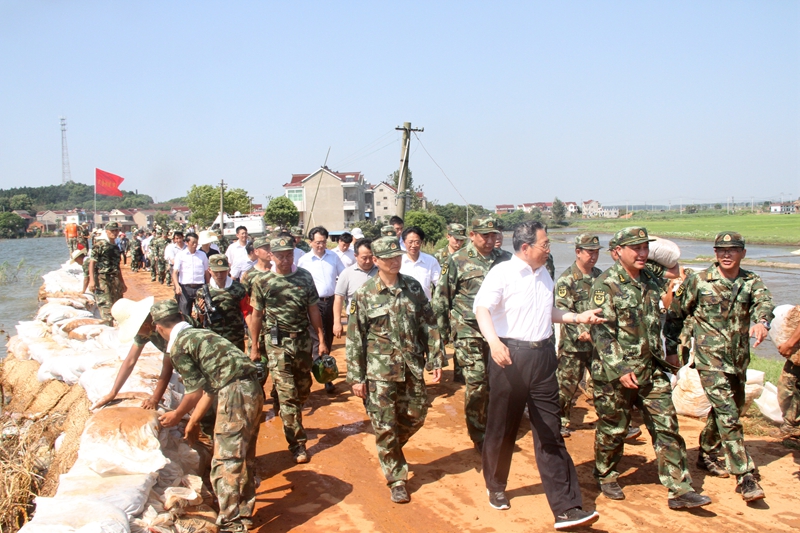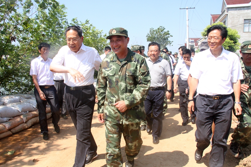 7月23日下午,武警部队司令员王宁率队前往普济圩农场枫沙湖跑马堤,实地了解洪灾情况,指导抗洪抢险工作。省委副书记、省长李锦斌,武警部队副司令员王兵,副省长、省防指总指挥方春明,武警安徽省总队司令员王宝音、政委马立克、副司令员高道权,省政府秘书长杨敬农、副秘书长叶晓明,省水利厅厅长方志宏,市领导宋国权、倪玉平、刘亚东、张梦生,市政府秘书长陈昌生,普济圩农场党委书记殷文格等陪同。