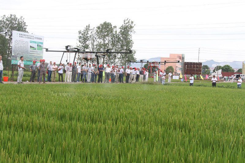 检查人员分别对各农业单位不同品种、不同生育期、不同受淹程度的水稻大田长势、农科所小品种展示和供销公司全程社会化服务飞防演示等进行现场观摩,相互交流、相互学习。