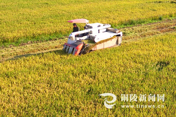 11月4日,铜陵普济圩农场的稻田里一派丰收景象,一台台收割机正在收割水稻。今年普济圩农场的水稻种植面积约8.2万亩,截至目前约收割了1.5万亩。受阴雨天气影响,收割进度比往年有所推迟。