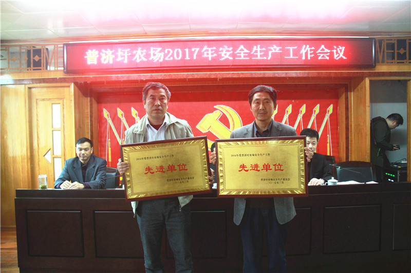 会上,副场长姚成月、王建国分别作了2017年安全生产工作、社会治安综合治理工作报告,总结2016年工作成效,布置2017年工作任务;对获得农场2016年度安全生产先进集体、先进个人和2015-2016年度社会治安综合治理先进集体、先进个人进行了通报表彰,颁发了奖牌和证书;并代表农场与相关单位主要负责人分别签订了2017年安全生产、社会治安综合治理责任状。