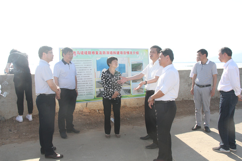 叶萍一行先后对北埂分洪闸改扩建工程、排灌总站及跑马堤堤防加固和防浪墙拆除重建工程进行了实地查看。