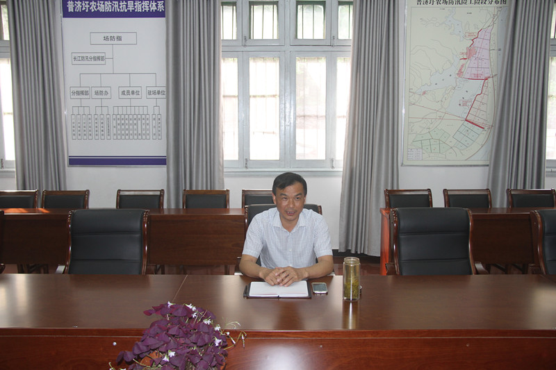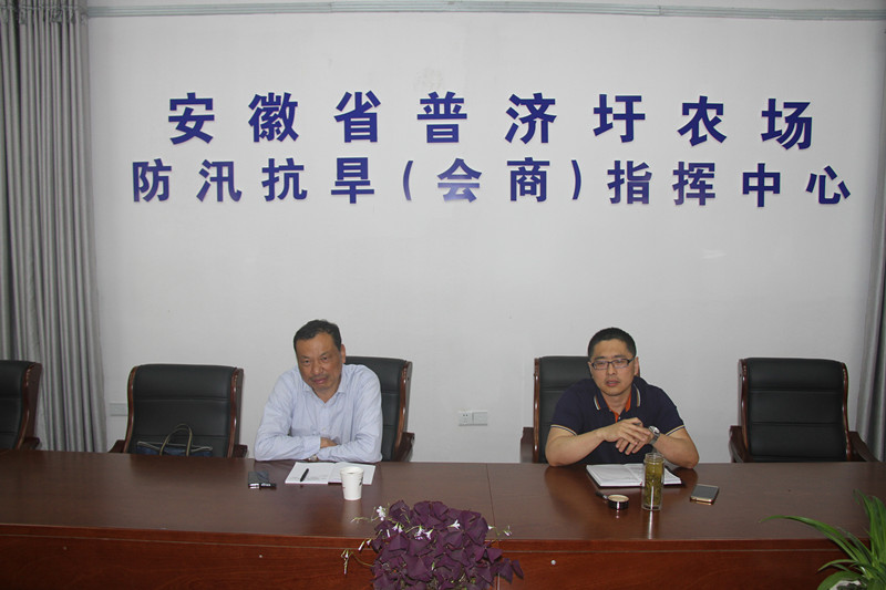姚成月副场长对农场2017年防汛工作情况进行了详细说明,江五九一行查阅了农场防汛应急预案、防汛规章制度等资料,对农场水利工程建设、排灌泵站维护、防汛物资准备情况进行了实地查看,并就检查情况与农场进行了反馈。