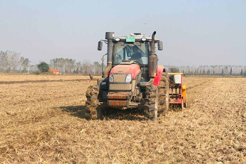 会上,白湖农机协会会长何凌云就机械的工作原理、技术特点和作业优势向大家进行了讲解。此次引进的旋耕播种开沟镇压一体机相较我场现有机械,具有以下优势:一是动力大,麦田开沟深度更深,达到“把田抬起来”的目的,二是旋耕深度更深,深耕松土的同时更加有效地实现秸秆还田,三是利用GPS定位,开沟更直,直线误差不超过2cm,沥水速度更快,四是播种更加精确,可以确保不漏播、少播和重播,五是携带镇压装置,可以将土壤压实,提高麦种出芽率,六是小麦播种作业一次性完成,更加节约人工和时间成本。