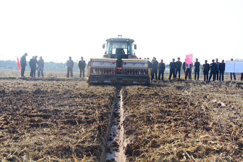 11月4日下午,在四分场第三管理区,普济圩农场刚从白湖农场引进的一台180马力旋耕播种开沟镇压一体机在技术人员的操控下,正在进行小麦播种作业。当日,普济圩农场小麦高产示范片建设现场会在此召开。场领导殷文格、王建国、朱吉华、姚成月,四个农业分场、农科所、普济种业、供销公司负责同志,机关部室负责同志及管理区工作人员等60余人参加。姚成月副场长主持现场会。