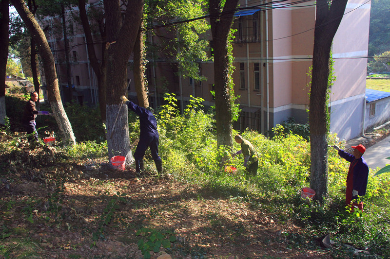 修剪工作预计将于11月中旬结束,目前工作人员正在给树木刷白。(图/文 综合办公室 信访保卫部)