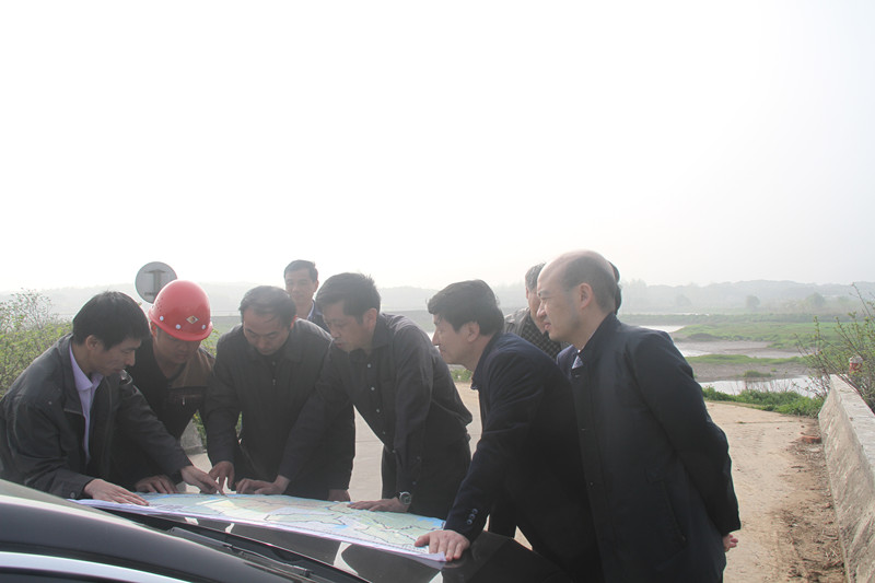 王友贵一行先后来到排灌总站、北埂分洪闸、中缺闸及横埠新后河治理工程后河堤、跑马堤施工现场进行实地调研。