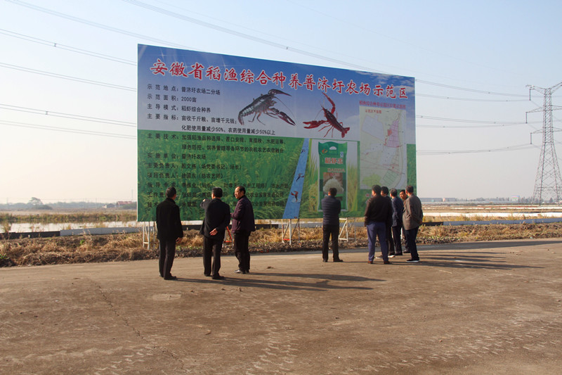 为全力创建国家级稻虾综合种养示范区,发投公司在集团公司领导的关心与支持下,2018年扩建了2000余亩稻虾综合种养示范基地,使发投公司稻虾综合种养示范面积扩大到5000余亩。为充分发挥稻虾综合种养示范带动作用和集团公司现代农业供给侧改革探索出一条全新的道路,发投公司一方面加强基地内部管理,强化“六统一”即基地统一基础设施建设,统一生产技术措施,统一技术服务,统一饲料、肥料、农药品牌品种选用,统一稻虾田间病虫害防治,统一品牌销售;另一方面加大对外宣传力度,于6月26日在新基地S227道路旁树立了两面大型室外展示牌———“安徽省普济圩现代农业集团创建国家级稻虾综合种养示范区”和“稻花香里钓龙虾 ”。