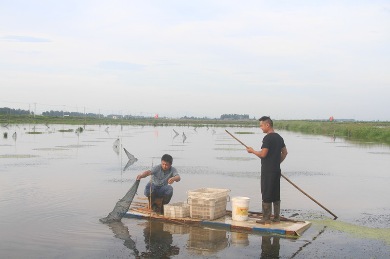 一畦龙虾肥,十里稻花香。在水田里,水稻长势喜人,在田四周挖开一条浅沟,稻在水中长、虾在稻下游,这一动一静,正是“稻虾共作”生态养殖模式的生动写照。在普济圩发展投资公司省级稻渔综合种养示范基地内,络绎不绝的水产客商们在路边排起了长队,鲜红鲜美的小龙虾被抢购一空。“稻虾共作”已成为普济圩职工群众致富的“新引擎”。