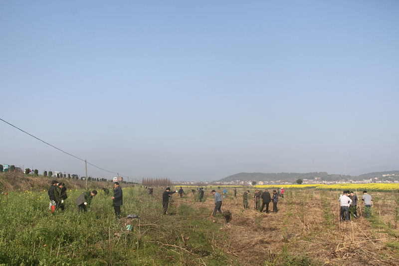 在火热的植树劳动现场,集团公司领导与机关工作人员齐心协力,挥锹铲土、扶直树苗、培实新土、提桶浇水,每一道工序都做的认真扎实。农水科技部还安排了技术指导人员,确保每棵树栽得直,每行每列栽得齐,植树现场一片热火朝天的景象。1000多株水杉树苗就栽植完毕,机关干部们的劳动将使这片大地披上绿装,美丽的湖心公路北岸变得更加生意盎然。
