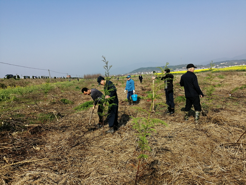 农科所组织全体机关人员开展义务植树活动。