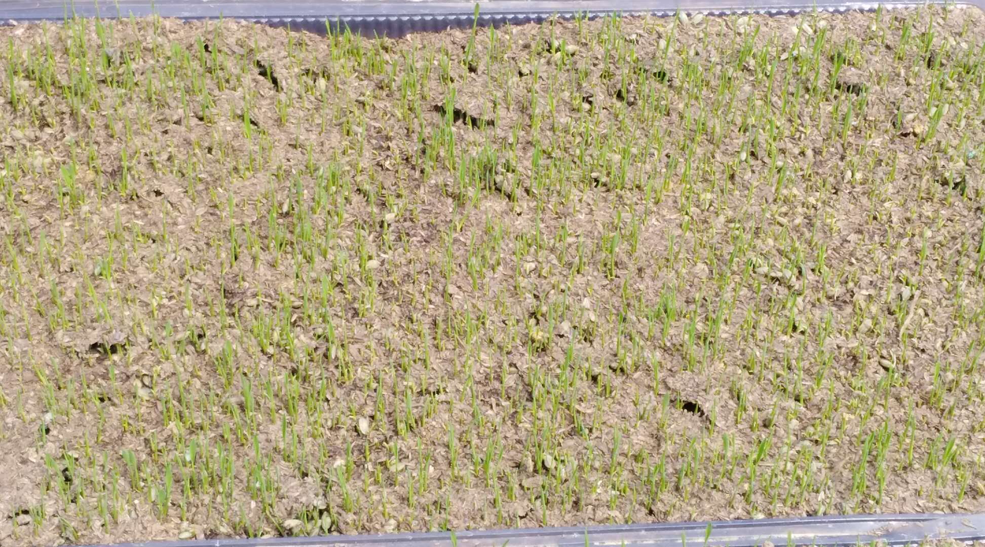5月14日,在与农服公司的协调对接下,组织一批技术人员和育秧机进行机械化育秧,优质稻种经过加工播撒在基质中,大约20天左右即可进行移载。目前,秧苗已经一片嫩绿,长势喜人。