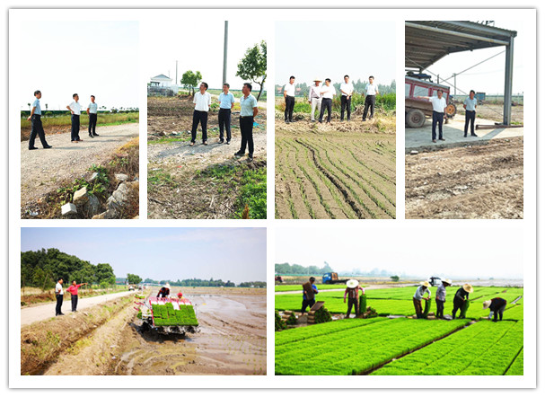 6月8日上午,集团公司党委书记、董事长殷文格、综合办公室主任吴大根到第三分公司检查旱育秧机插秧工作,分公司经理何世楼、副经理俞镇宇陪同检查。