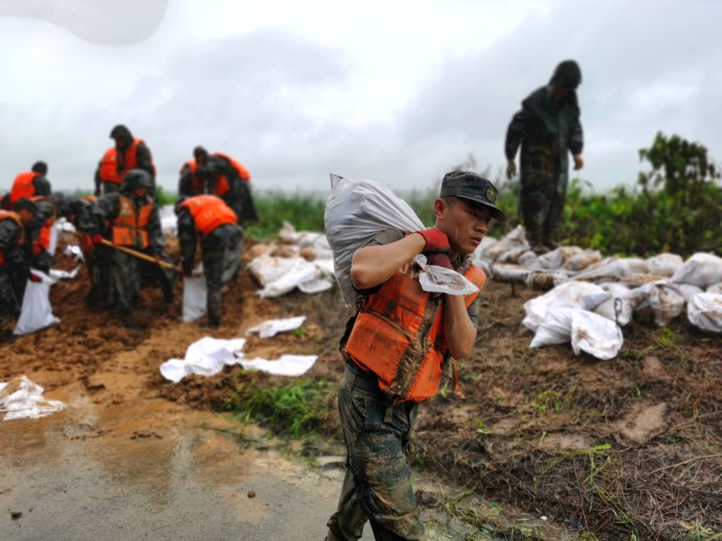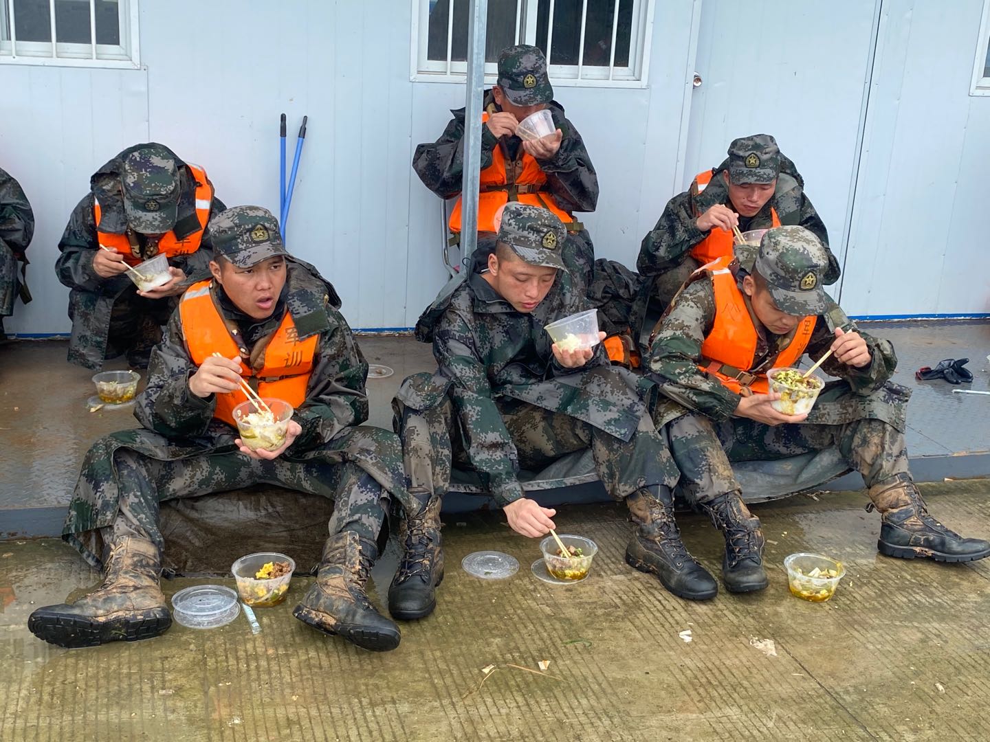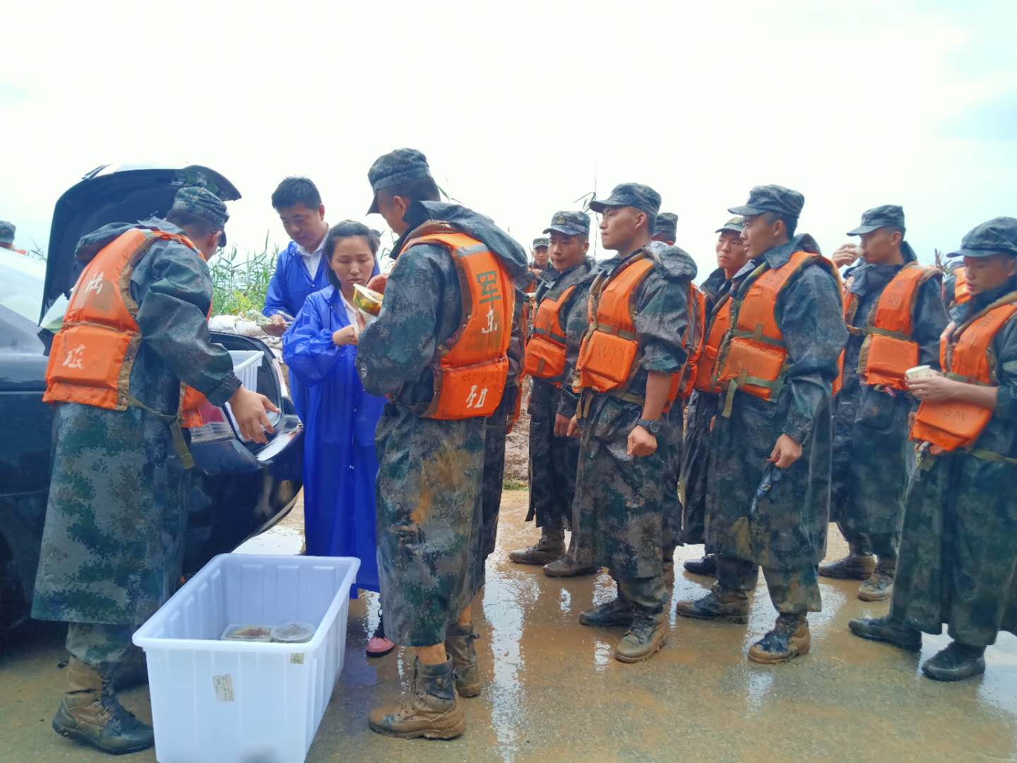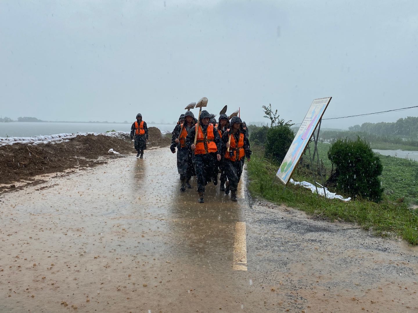 灾情就是命令,7月16日清晨,解放军某部闻令而动,紧急出动280多名官兵奔赴湖心堤防汛一线,战士们冒着暴雨沿湖心堤搬运沙袋、构筑加固,最终历经7小时的奋战,垒放齐整,坚如磐石的3公里湖心堤坝加固完成,险情得以控制。