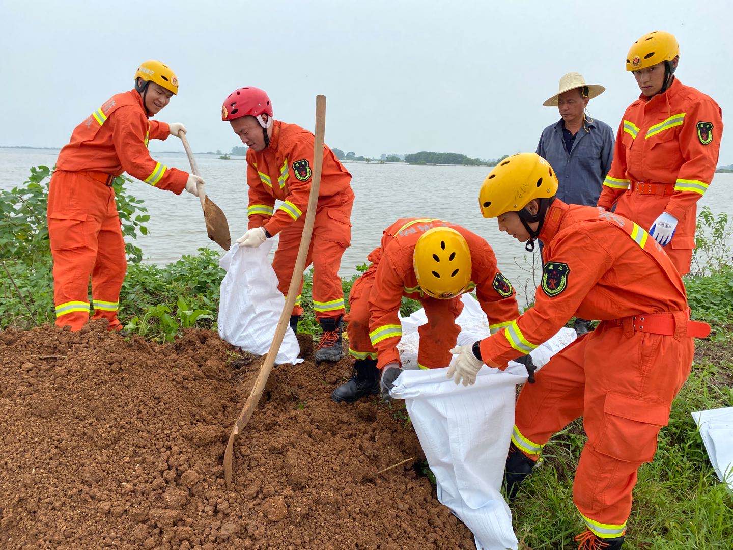 汛情就是使命,防汛就是责任,7月19日晚,浙江宁波消防支队接到增援命令后,第一时间调集96名消防官兵整装出发,出动20辆消防车、10艘救援舟星夜驰援,奔赴普济圩农场,并于7月20日清晨到达指定地点迅速开展抢险工作。经过短暂的会商后,96名消防官兵立即集结奔赴陈瑶湖湖心堤处,马不停蹄的装土搬运,构筑加固,最终成功将部分堤段满溢处加固,险情得以控制。